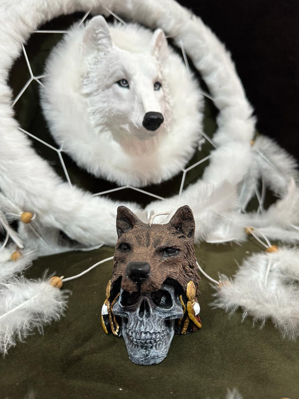Vela aromática calavera 💀 con lobo gris🐺